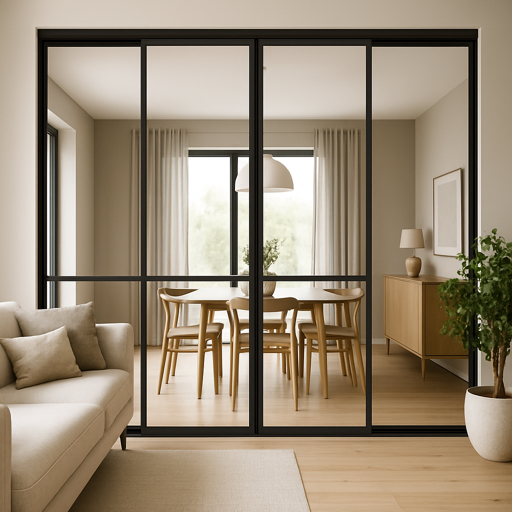 - Skyvedører i glass mellom stue og spisestue